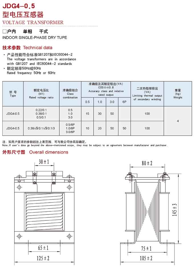 外形及安裝尺寸 JDG4-0.5型電壓互感器