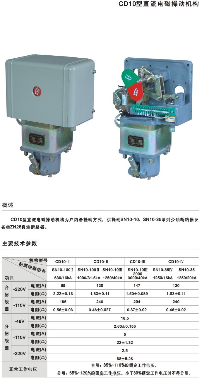 | 產品名稱: | CD10系列直流電磁操動機構 | |||||