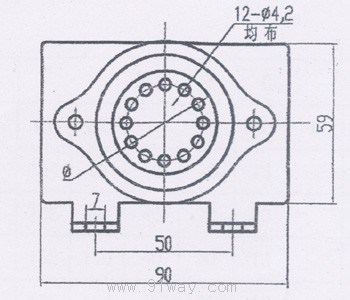 F9系列輔助開關是由多節組合而成的,本體內部結構如圖一所示。每節上方兩側都有標號表示本觸頭的號數,同一節中對角線形成一對常開(或常閉)回路,常開(或常閉)的確定由操動軸上的指示片顯示,指示片指向一組接觸界限內,說明本組為接觸可靠的一對常閉接點(回路),其余的為一對常開接點。