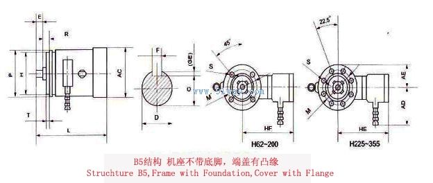 B34結(jié)構(gòu) 機座帶底腳.端蓋子有凸緣(帶螺孔)的電動機