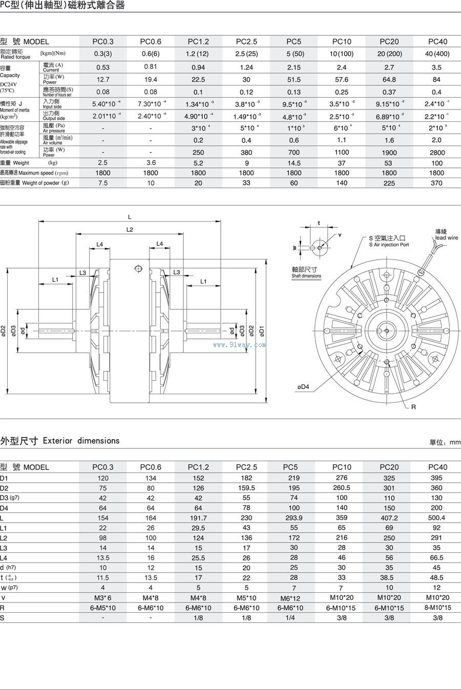 PC系列突出軸型磁粉離合器技術(shù)參數(shù) II: