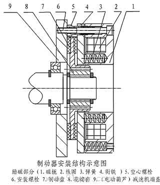 安裝前應將摩擦副表面油污、雜物清除干凈。工作一段時間后,由于摩擦材料的磨損使制動器工作氣隙過大,應及時調整好工作氣隙至初始安裝氣隙推薦值δ,以免影響正常工作。