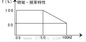 對(duì)電網(wǎng)頻率為50Hz(或60Hz)的電源,其調(diào)速范圍一般為5Hz-100Hz(或6Hz-120Hz)(1:20)電動(dòng)機(jī)在5Hz-50Hz(或6Hz-60Hz)時(shí)輸出額定轉(zhuǎn)矩,為恒轉(zhuǎn)矩運(yùn)行區(qū),在 50Hz-100Hz(或60Hz-120Hz)時(shí)輸出額定功率,為恒功率運(yùn)行