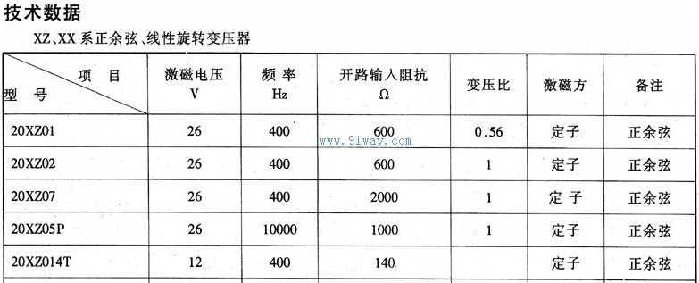20XZ01,20XZ02,20XZ07,20XZ05P.20XZ14P系列正余弦旋轉變壓器