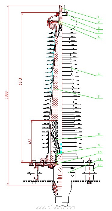復(fù)合套管型充油式戶(hù)外終端安裝結(jié)構(gòu)示意圖