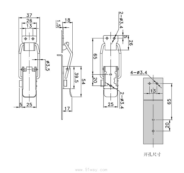 MS607搭扣門鎖型號 - MS607 類別 - 新產品 止口高度 產品簡介 材質:全不銹鋼; 結構:無鎖芯搭扣。