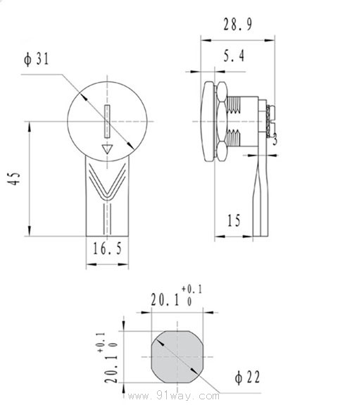 MS705-3CF電柜門鎖簡介 材質:鋅合金鎖體、螺母,鍍鋅鋼鋼栓; 表現處理:噴砂亮光鉻(CP01); 結構功能:密封防水平面鎖,左右開門通用; 備注:適用門板厚度1-5mm,鋼栓開孔□8X8