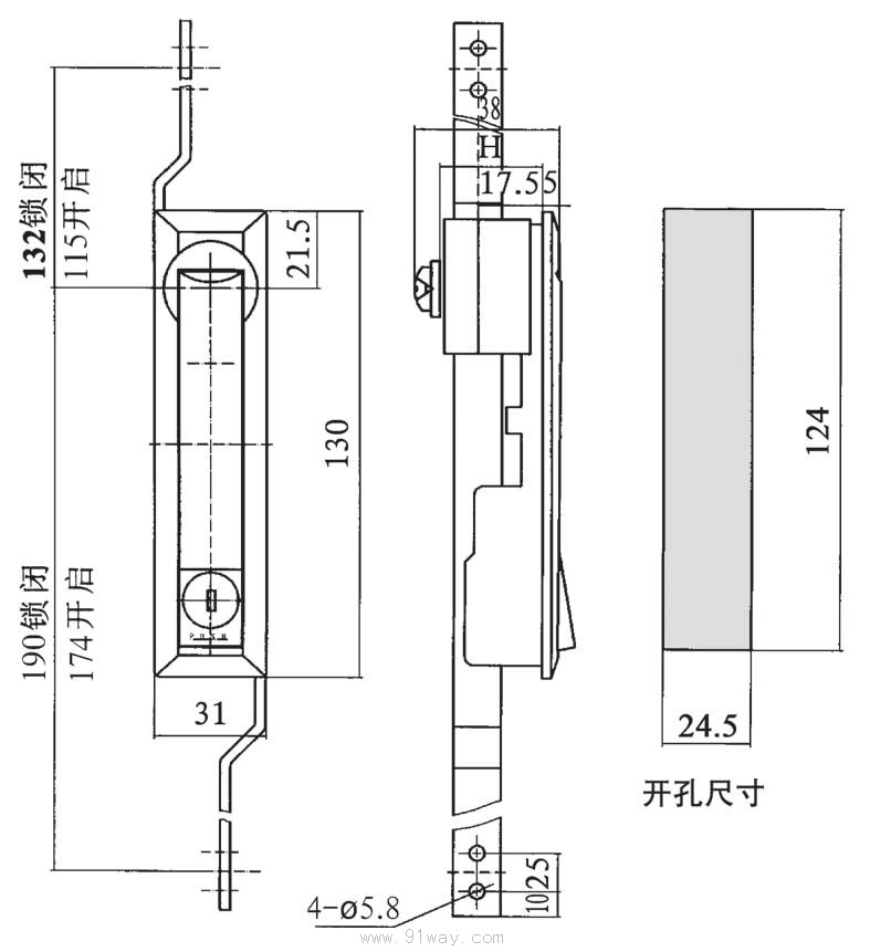材質鋅合金鎖體。鍍鋅鋼板鋼栓、傳動條、壓板; 表面處理: 亞光鉻(CP02);無光黑(CS01);結構功能:平面連桿傳動鎖;調換傳動條左右位置可實現左右開門;可按要求變換兩點及三點鎖住結構;備注 remarks適用門板厚度:1.2-3mm;配其它鋼栓