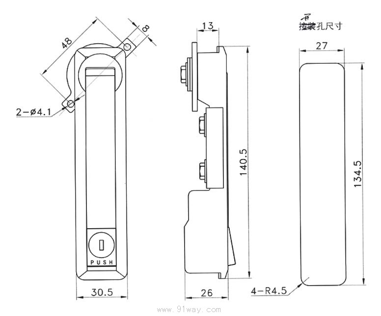 MS736電柜門鎖簡介 1.材質:鋅合金鎖體;鍍鋅鋼壓板及鋼栓; 2.表面處理: 亞光鉻(CP02);無光黑(CS01); 3.結構功能:平面鎖;有防水功能;兩點鎖住結構;轉換定位件位置可實現左右開門; 4備注:適用門板厚度:1-3mm;鋼栓開孔10X10;; 可選用連桿:LG001-I, LG001-II, LG007;MS736電柜門鎖