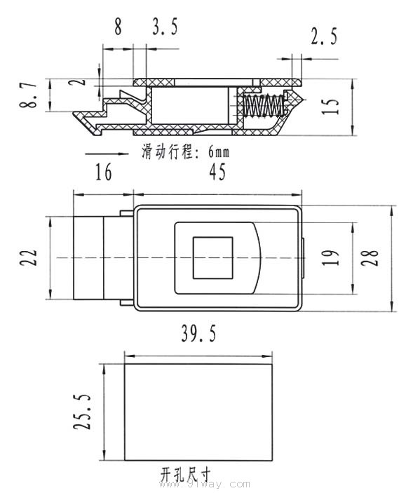 725-3B電柜門鎖簡介 材質:塑料鎖體 結構功能:平面鎖;內安裝復位彈簧;MS725-I適用門板厚度: 0.8~2mm;安裝方便,使用簡單