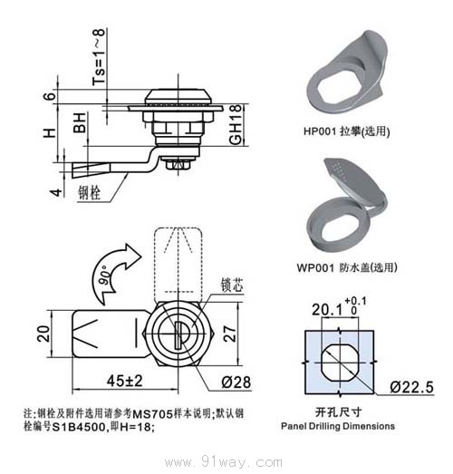 705-3E電柜門鎖外形尺寸