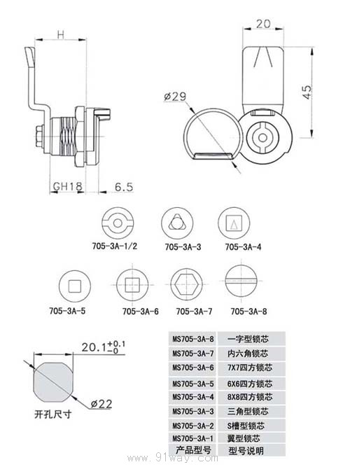 3.結構功能:密封防水平面鎖,鎖芯外形有8種可供選擇,左右開門通用;