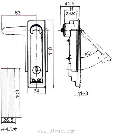 MS713B電柜門鎖 止口高度 30、45 產品簡介 材質鋅合金鎖體、轉軸。鍍鋅鋼板鋼栓、壓板 表面處理: 亞光鉻(CP02) 結構功能:密封防水平面鎖,可配單點、兩點、三點鋼栓;變換定位件位置可實現左右開門通用; 備注:適用門板厚度:1.5-3;配其它鋼栓見 頁,鋼栓開孔□ 10 X10;配其它鑰匙見 頁; 可選用連桿: LG001-I, LG001-II, LG007-A,LG007-B