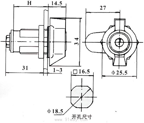 MS815電柜門鎖 產品描述 是旋手柄式的門鎖,鑰匙轉180度后,手柄帶動鎖栓開啟柜門,左右開門通用。