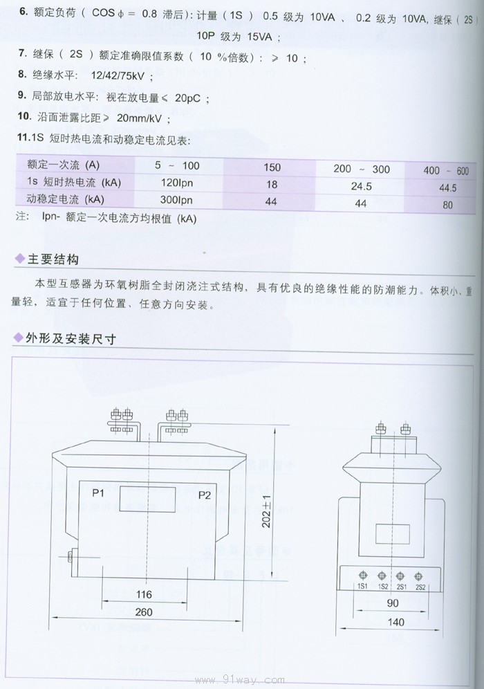 LFS,LFSQ-10(Q)型支柱式半封閉電流互感器為環(huán)氧樹脂澆注半封閉支柱式結(jié)構(gòu),適用于額定頻率50Hz,額定電壓10kV及以下的戶內(nèi)電力 線路及設備中作電流、電能的測量和繼電保護使用