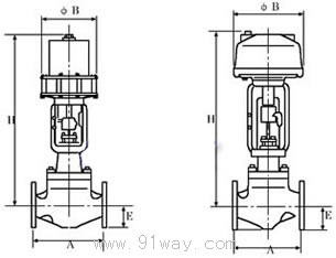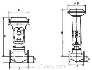 HSC套筒單座調節閥法蘭距及外形尺寸