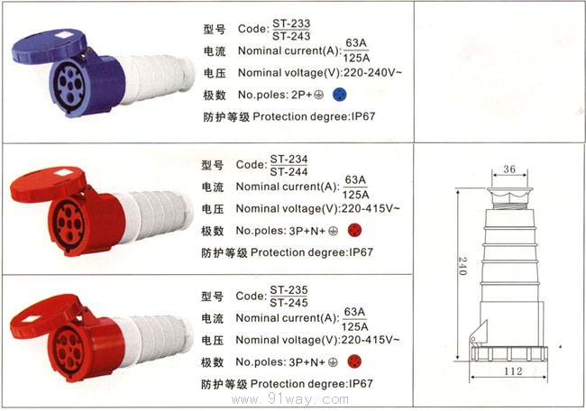 ST-233/ST-243~ST-235/ST-245型63A、125A連接器