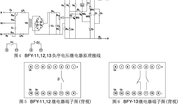 BFY-13負序電壓繼電器背視端子圖示于圖6。